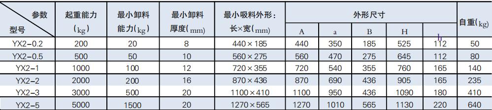 YX2 產(chǎn)品主要技術參數(shù)