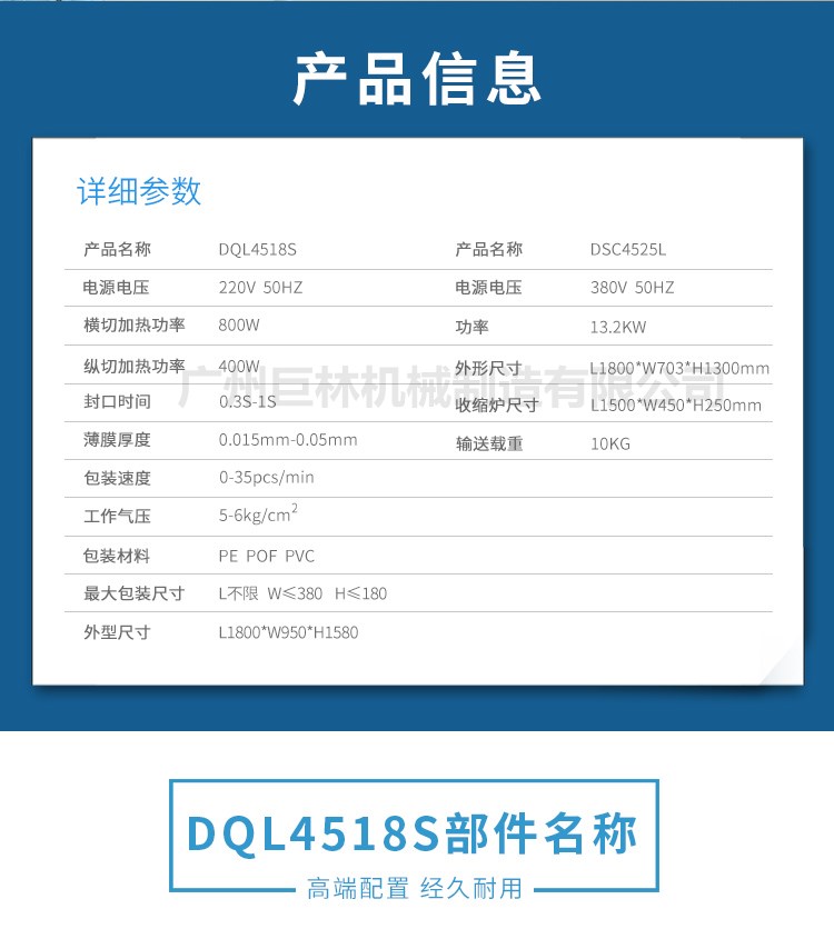 【DQL4518S全自動邊封封切機+DSC4525L熱收縮包裝機 】詳細信息